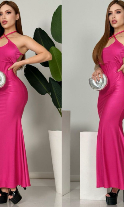 Vestido Maxi Largo Satinado Rosa