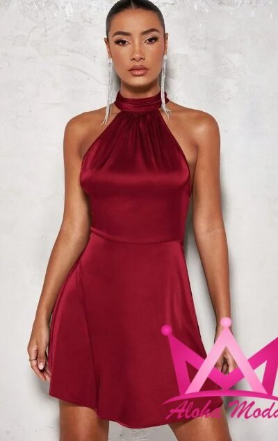 Vestido Mini Satinado Cuello Halter