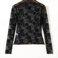Fabricada con materiales de calidad, esta blusa asegura durabilidad y una experiencia de uso cómoda. La malla negra brinda un toque delicado y femenino, mientras que el patrón floral añade un detalle que la hace destacar. La manga larga es perfecta para temporadas más frescas y para combinar con diferentes estilos, desde informales hasta más elegantes.