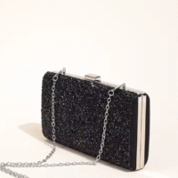 En resumen, la bolsa de fiesta con pedrería color negro y correa de cadena combina belleza, versatilidad, y practicidad, lo que la convierte en una elección imprescindible para quienes buscan estilo y comodidad en un accesorio único.+66