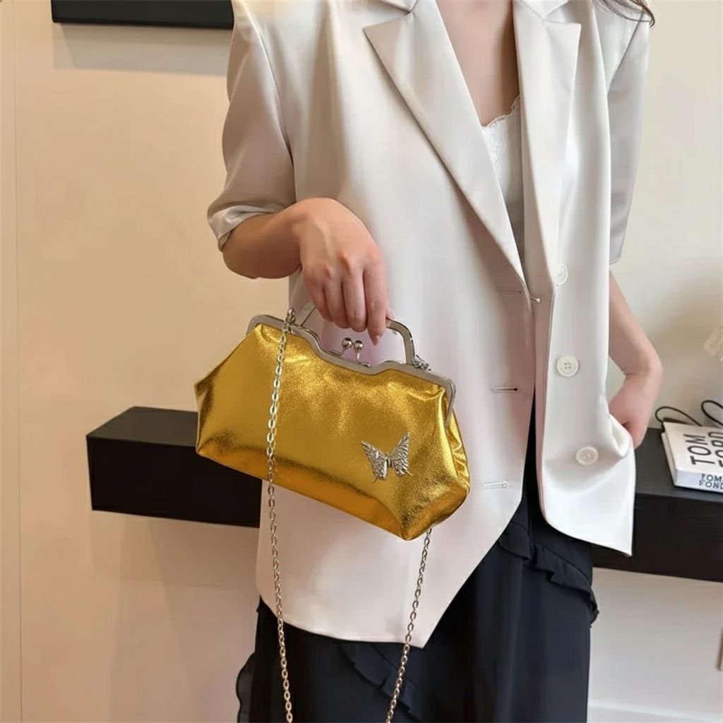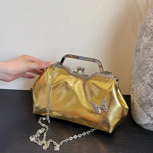 Ya sea para una cena elegante, una fiesta con amigos o simplemente un paseo nocturno, la Bolsa Metalizada Dorada de Mariposa con Correa de Cadena se adapta a cualquier ocasión. Su versatilidad la convierte en el complemento ideal para conjuntos formales o casuales, agregando un toque de lujo y brillo. Con su diseño atemporal, encontrarás que esta pieza será una excelente inversión en tu colección de accesorios.
