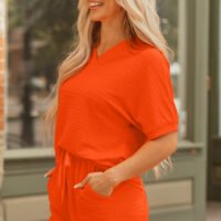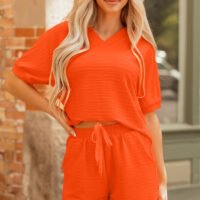 Conjunto de top y short con cuello en V y textura naranja