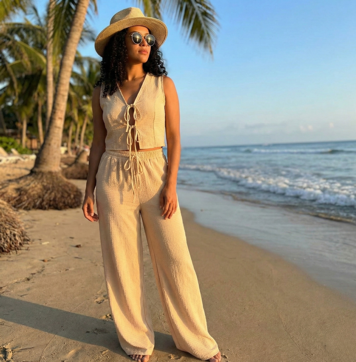 Este conjunto de dos piezas en color beige es la combinación perfecta de modernidad y elegancia. Diseñado pensando en la comodidad y el estilo diario, este set transforma cualquier ocasión en una oportunidad para brillar.