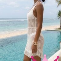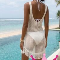 Los flecos cuidadosamente añadidos aportan un toque dinámico y moderno a este vestido, ideal para paseos en la playa o reuniones casuales. Combínalo con tus accesorios favoritos para crear un look único.