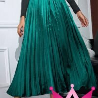 Descubre el estilo de la Falda Larga Plisada Satín Verde