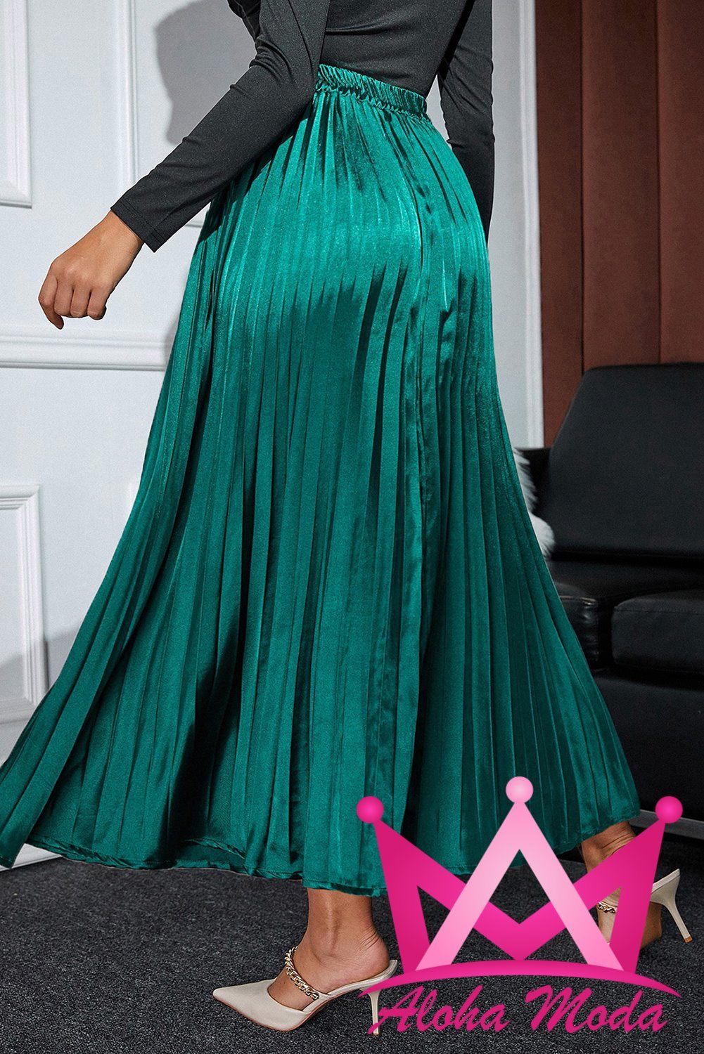 Cómo estilizar la Falda Larga Plisada Satin Verde