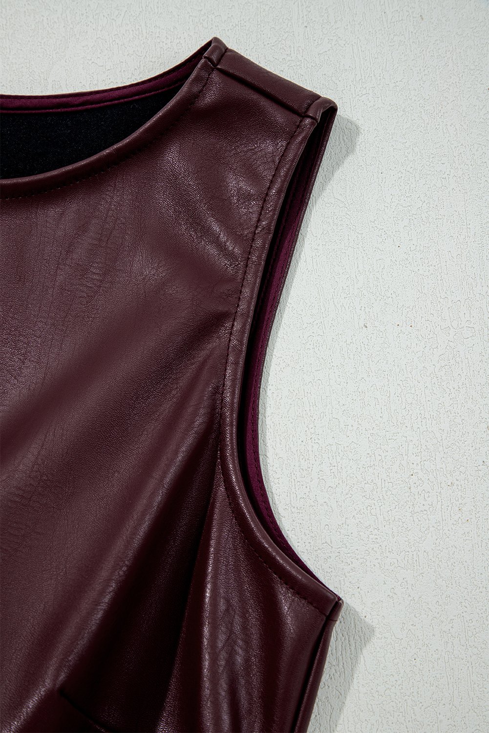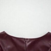 Si buscas un atuendo que combine elegancia, comodidad y versatilidad, este minivestido ajustado sin mangas de vinipiel marrón es la elección perfecta para cualquier guardarropa moderno.