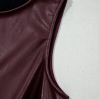El minivestido está confeccionado con materiales de alta calidad que aseguran una durabilidad excepcional. La vinipiel no solo ofrece un aspecto refinado, sino que también es resistente al desgaste, fácil de cuidar y perfecta para usar en diferentes estaciones del año. Su ajuste preciso y diseño sin mangas lo convierten en una pieza imprescindible para quienes valoran la funcionalidad y el estilo.