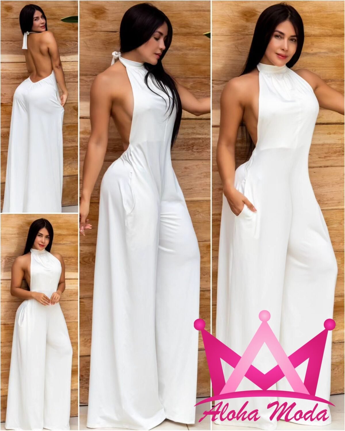 Fabricado con una tela suave y de alta calidad, el Palazzo ofrece un acabado pulido que brilla por sí mismo. El cuello halter proporciona un toque moderno, mientras que la pierna ancha favorece todo tipo de siluetas, adaptándose a tu cuerpo de manera natural. Este estilo se complementa perfectamente con una variedad de calzado, desde sandalias planas hasta tacones altos, lo que amplía sus opciones de uso.