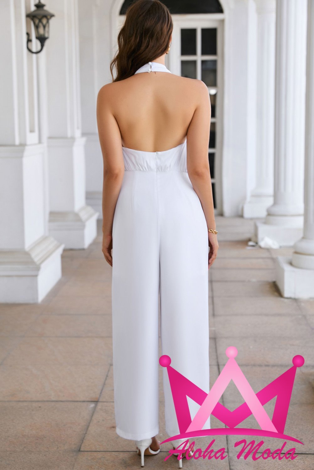 Elegir el Palazzo Pierna Ancha Cuello Halter color blanco es optar por la fusión de moda y funcionalidad. Su color neutro no solo es fácil de combinar con otros tonos, sino que también destaca en cualquier entorno. Ya sea que lo uses durante el día o en la noche, estarás lista para atraer todas las miradas. No te pierdas la oportunidad de agregar esta pieza versátil y chic a tu guardarropa. Mejora tu estilo con este fundamental esencial que exuda sofisticación y comodidad sin esfuerzo.