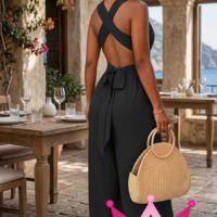 Descubre el encanto del palazzo pierna ancha sin mangas negro. Su diseño elegante con un escote en V añade un toque de distinción, perfecto para cualquier ocasión especial o casual. Este palazzo combina comodidad y estilo, convirtiéndolo en una pieza esencial para tu armario.
