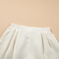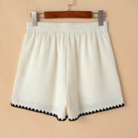 El contraste de colores entre el blanco puro de los shorts y el dobladillo negro proporciona un detalle visual que llama la atención y añade carácter a tu estilo. Combínalos fácilmente con camisetas, blusas o incluso chaquetas ligeras para crear looks únicos que reflejen tu personalidad. Además, estos shorts son lo suficientemente elegantes para adaptarse a cualquier ocasión, brindándote la flexibilidad que buscas en tu guardarropa diario.