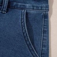 - Cierre con cremallera y botón, y bolsillos laterales y traseros de parche.