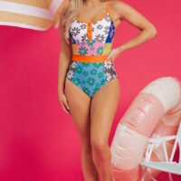 - We love this color-blocked in the Brazil-inspired florals with contrasting trim.