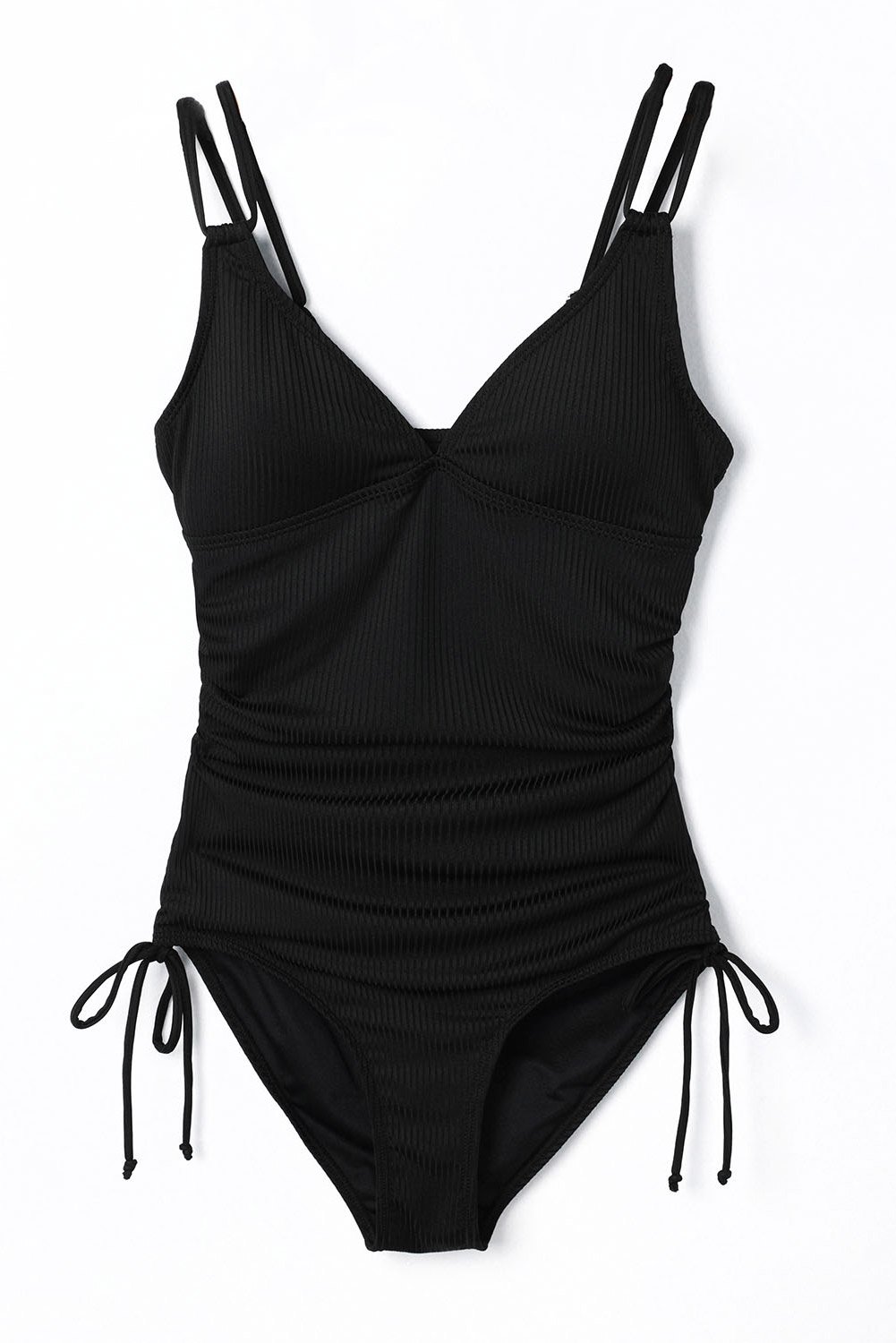Traje de baño de una pieza de punto acanalado con tirantes ajustables negro