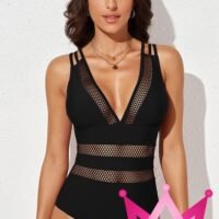 Este traje de baño de una pieza de malla negra sólida con escote cruzado combina estilo y confort en un diseño moderno y elegante. Perfecto para quienes buscan un look refinado mientras disfrutan del sol y la playa.