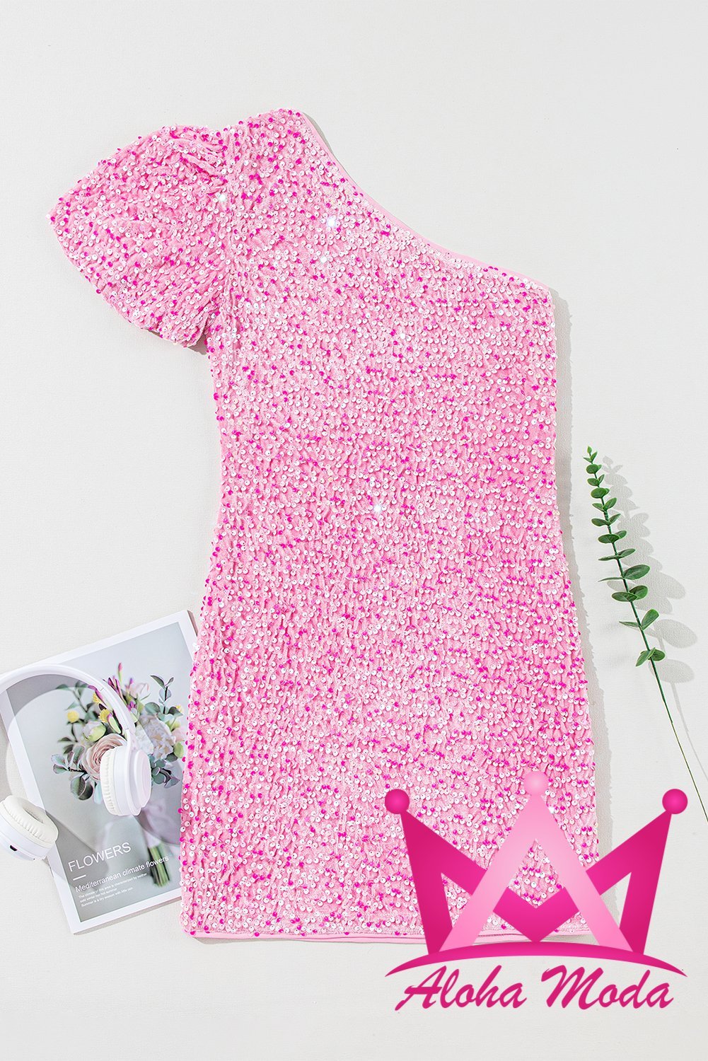 ¿Buscas un vestido que combine elegancia, modernidad y un toque de glamour? Este vestido corto ajustado color rosa de lentejuelas es la elección perfecta. Diseñado para realzar tu figura, su ajuste armonioso destaca tus curvas mientras te envuelve en destellos brillantes que garantizan que serás el centro de atención en cualquier evento.