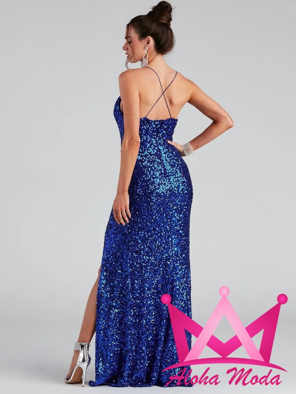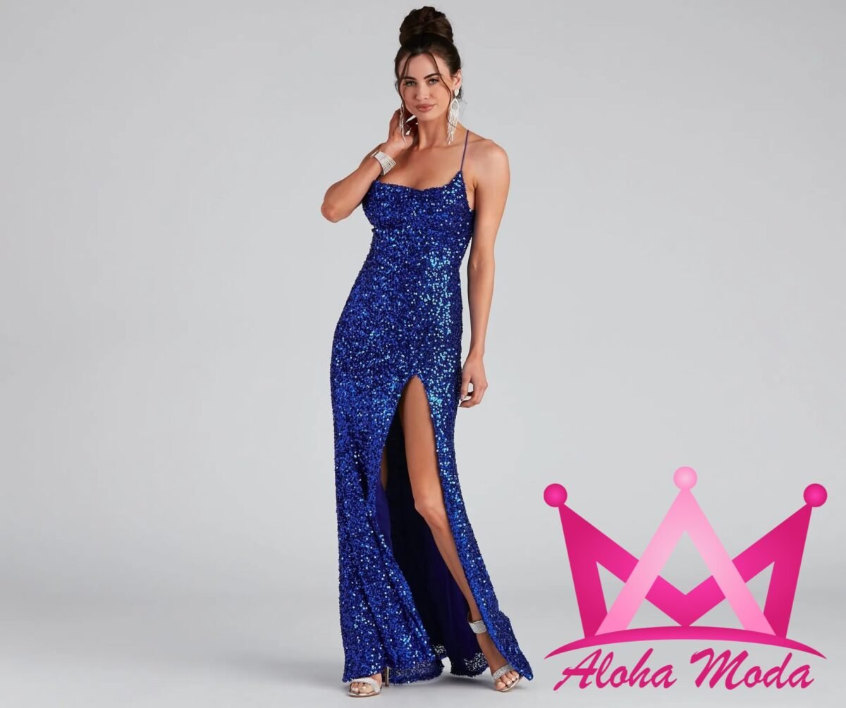 El vestido largo de lentejuela azul es la elección perfecta para aquellas que desean brillar en cualquier evento. Con su diseño moderno y sofisticado, este vestido no solo resalta la figura, sino que también ofrece un look deslumbrante que seguramente atraerá todas las miradas. Las lentejuelas brillantes capturan la luz de manera excepcional, creando un efecto deslumbrante que es ideal para fiestas, bodas o cualquier ocasión especial.