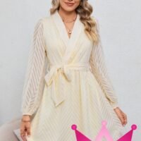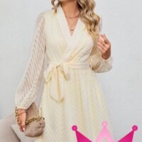 El vestido beige patrón de rayas con manga larga trasparente es una adición imprescindible para aquellas que buscan combinar elegancia y comodidad. Este vestido, con su diseño sofisticado, es perfecto para cualquier ocasión, ya sea una salida casual durante el día o una elegante cena por la noche.