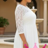 El vestido corto blanco es ideal para aquellos días en que deseas sentirte fresca y libre. Con mangas 3/4 y un delicado encaje, el vestido no solo ofrece una apariencia chic, sino que también asegura comodidad a lo largo del día. El encaje, cuidadosamente elaborado, aporta un toque de feminidad, mientras que el color blanco resalta su versatilidad. Combínalo con unos tacones para una cena elegante o con sandalias para un día de paseo, ¡las posibilidades son infinitas!