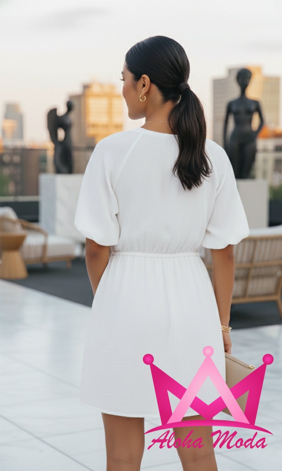 Este vestido corto blanco no es solo una prenda más; es una pieza versátil que puedes estilizar de múltiples maneras. Combínalo con sandalias para un look casual o añádele unos tacones para un evento especial. También puedes complementarlo con accesorios coloridos que resalten su diseño sencillo. La posibilidad de crear diferentes looks con una sola pieza la convierte en una inversión inteligente para tu guardarropa.