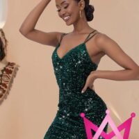 El vestido está disponible en dos colores fascinantes: un elegante azul que emana sofisticación y un vibrante verde que aporta frescura y modernidad. Ambas opciones permiten reflejar tu personalidad y adaptarse al estilo del evento que elijas. Estas tonalidades han sido seleccionadas cuidadosamente para resaltar las lentejuelas sin restarle elegancia al diseño general.