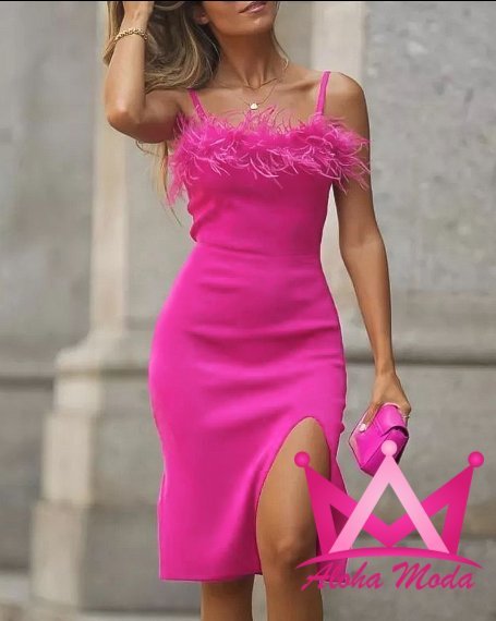 Descubre el vestido corto rosa ajustado de tirantes con decoración de plumas en cuello cuadrado, una pieza diseñada para combinar sofisticación y modernidad en cualquier ocasión especial. Este diseño audaz y femenino es perfecto para quienes buscan resaltar su estilo único mientras irradian confianza y encanto. Con un color rosa vibrante y un ajuste perfecto que realza tu figura, este vestido promete ser el centro de atención.