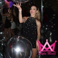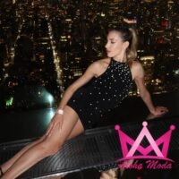 Descubre el encanto del vestido corto negro ajustado con diseño halter, una pieza que está pensada para realzar la silueta femenina y estilizar los hombros de manera impecable. La prenda ideal para lucir sofisticada y segura en cualquier evento especial.