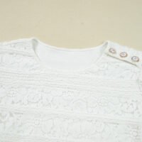 Este vestido corto no solo destaca por su delicado encaje blanco de crochet, sino también por su práctico y atractivo cuello redondo que añade un toque de frescura y versatilidad. El diseño minimalista pero refinado lo convierte en una pieza ideal tanto para eventos formales como casuales. Combínalo con sandalias o tacones para la cita perfecta, o agrégale accesorios llamativos para un look más audaz. La calidad del material asegura una prenda duradera y cómoda que nunca pasará de moda.