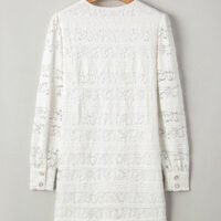 Descubre el encanto del vestido corto recto de encaje blanco de crochet con cuello redondo, una prenda imprescindible para quienes buscan combinar estilo y comodidad. Diseñado con atención al detalle, este vestido refleja una sofisticación moderna que te hará destacar sin esfuerzo en cualquier ocasión. Su corte recto y tejido de encaje crochet crean una silueta estilizada que se adapta a diferentes tipos de cuerpo, realzando tu figura de manera natural.