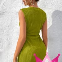 Descubre el encanto del vestido corto sin mangas de textura de rayas color verde. Su diseño impecable combina comodidad y estilo, convirtiéndolo en una prenda indispensable para tu guardarropa. Perfecto para lucir en eventos casuales y ocasiones especiales.