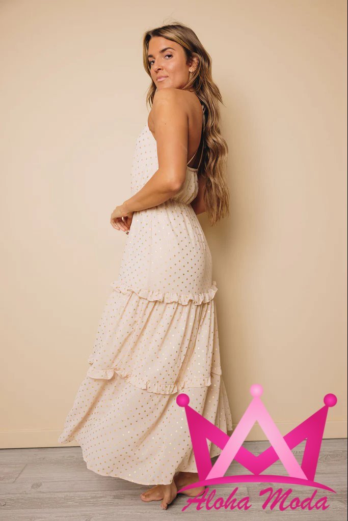 Confeccionado con materiales de alta calidad, este vestido no solo proporciona un ajuste cómodo, sino que también garantiza durabilidad y estilo. Los puntos dorados añaden un toque de sofisticación, ideal para quienes desean destacar sin ser demasiado ostentosos. Las delicadas líneas del vestido favorecen la figura femenina, haciendo que cada movimiento fluya con gracia. Además, el diseño del vestido largo permite una libertad de movimiento incomparable, lo que lo convierte en una opción ideal para eventos donde la comodidad es clave.