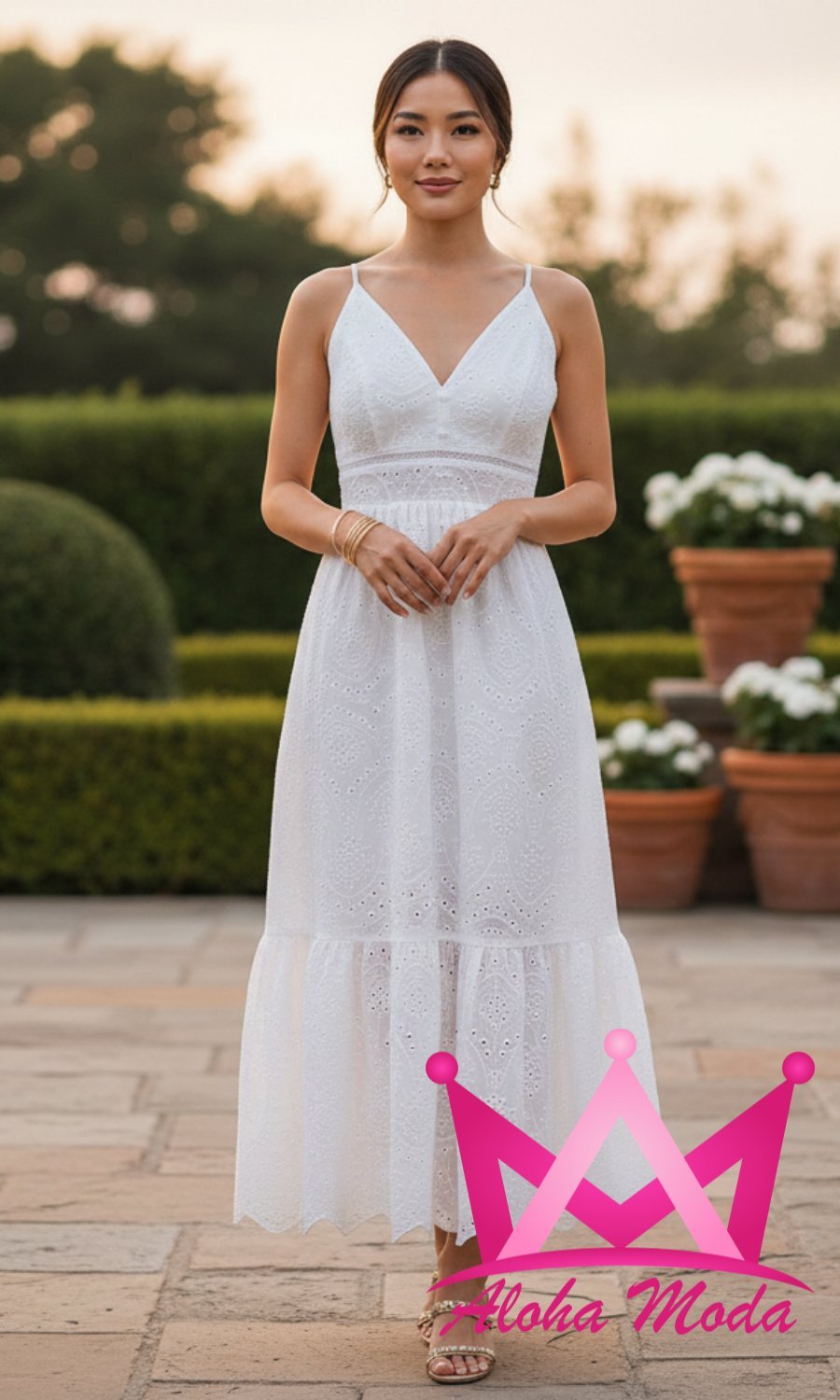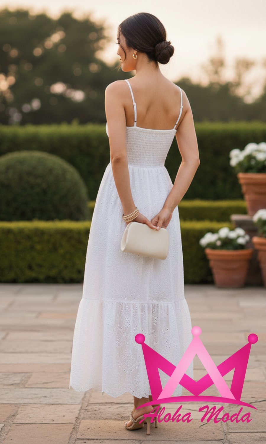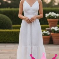 La versatilidad del vestido maxi blanco de tirante lo convierte en un imprescindible en cualquier armario. Puedes combinarlo con sandalias para un look casual de verano, o realzarlo con accesorios elegantes y tacones para una reunión nocturna. Su tono neutral y diseño refinado lo hacen compatible con una amplia variedad de estilos y preferencias, convirtiéndolo en una pieza atemporal que nunca pasa de moda.