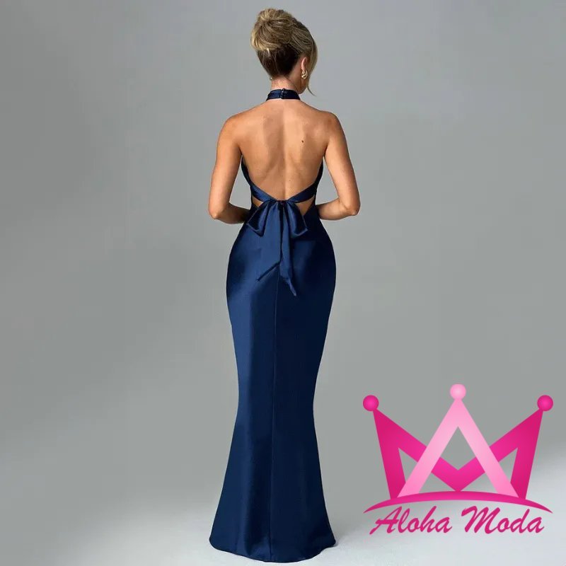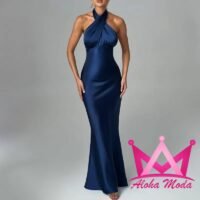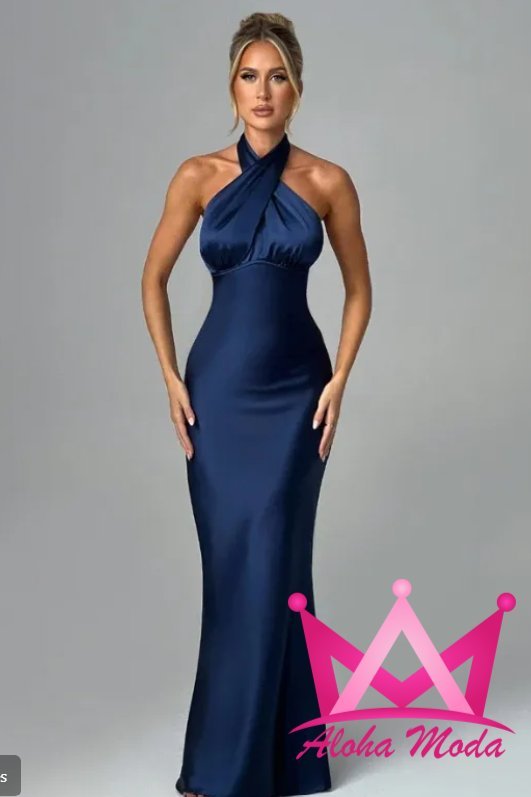 Eleva tu estilo con el vestido maxi ajustado satinado. Este diseño exclusivo fusiona la sofisticación del satín con una silueta ajustada que realza tu figura, garantizando que te sientas segura y deslumbrante. La construcción del cuello halter añade un toque de elegancia clásica, mientras que los colores disponibles, azul y rojo, abren posibilidades para diversas ocasiones, desde eventos nocturnos hasta celebraciones especiales.