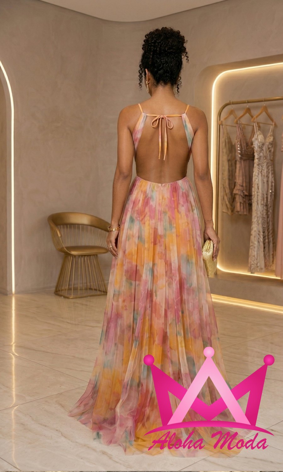 El escote trasero junto con el cuello en V agrega un toque de elegancia discreta a este vestido. Cada elemento está diseñado para resaltar tu belleza natural mientras te mantienes fresca y cómoda durante cualquier ocasión.