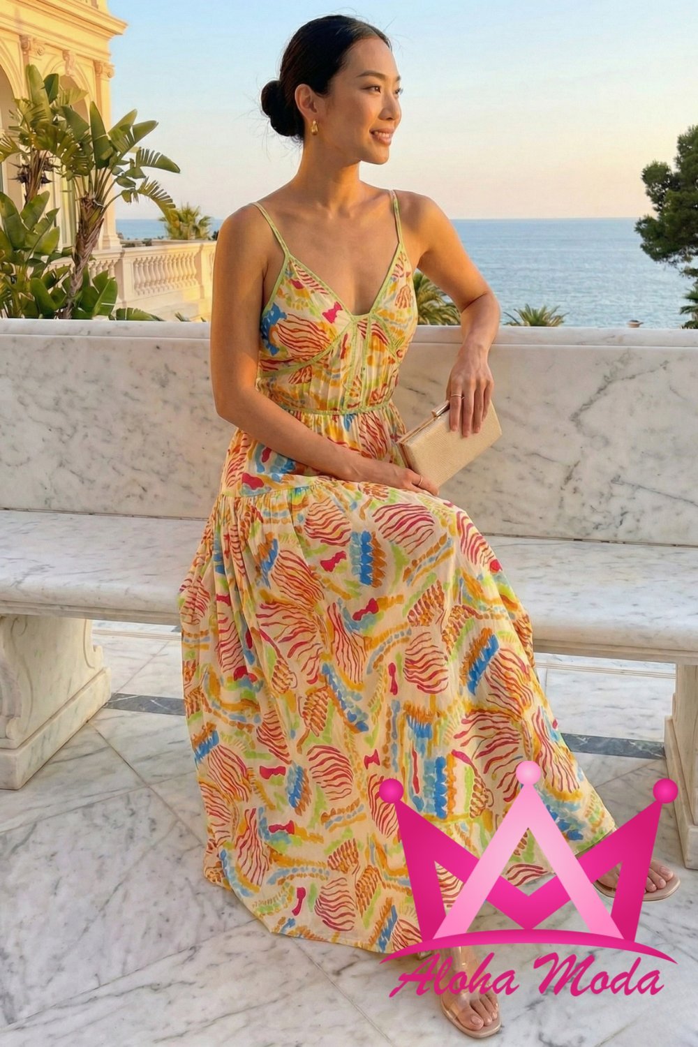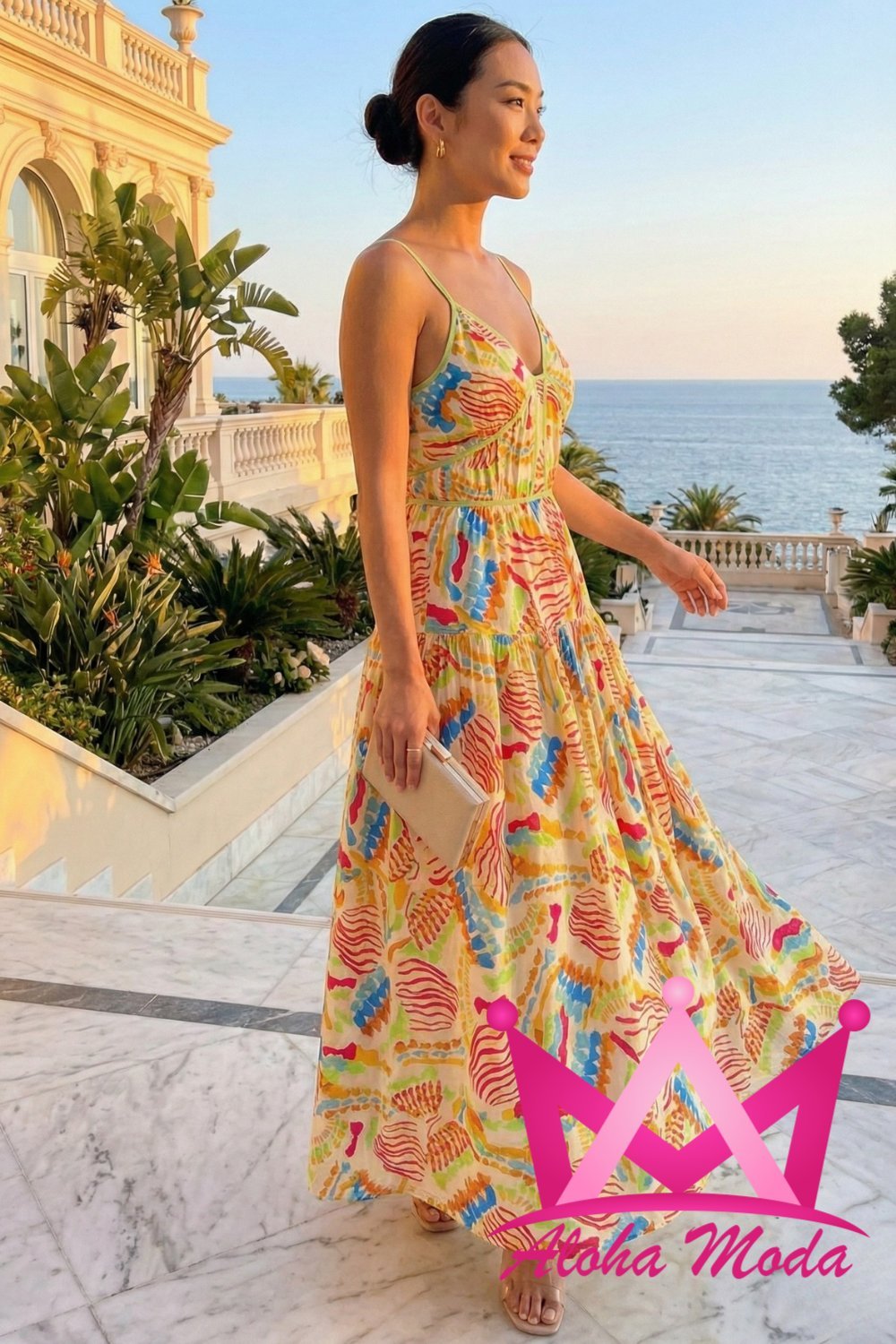 El Vestido Maxi Estampado Abstracto de Tirantes es una pieza esencial que se adapta a una gran variedad de estilos y ocasiones. Combínalo con sandalias para un look relajado de verano, o añade accesorios como un cinturón y tacones para darle un giro más elegante. Este vestido no solo es una declaración de moda, sino que también ofrece funcionalidad, siendo fácil de estilizar para cualquier evento en tu calendario.