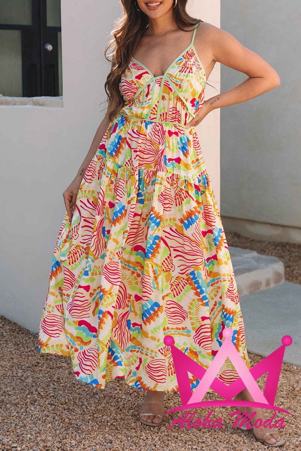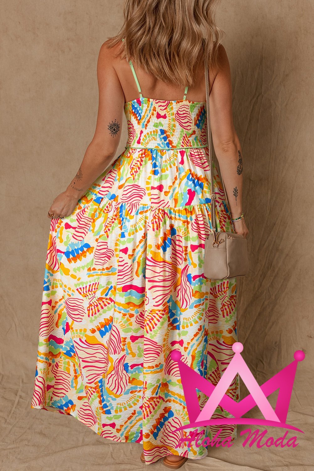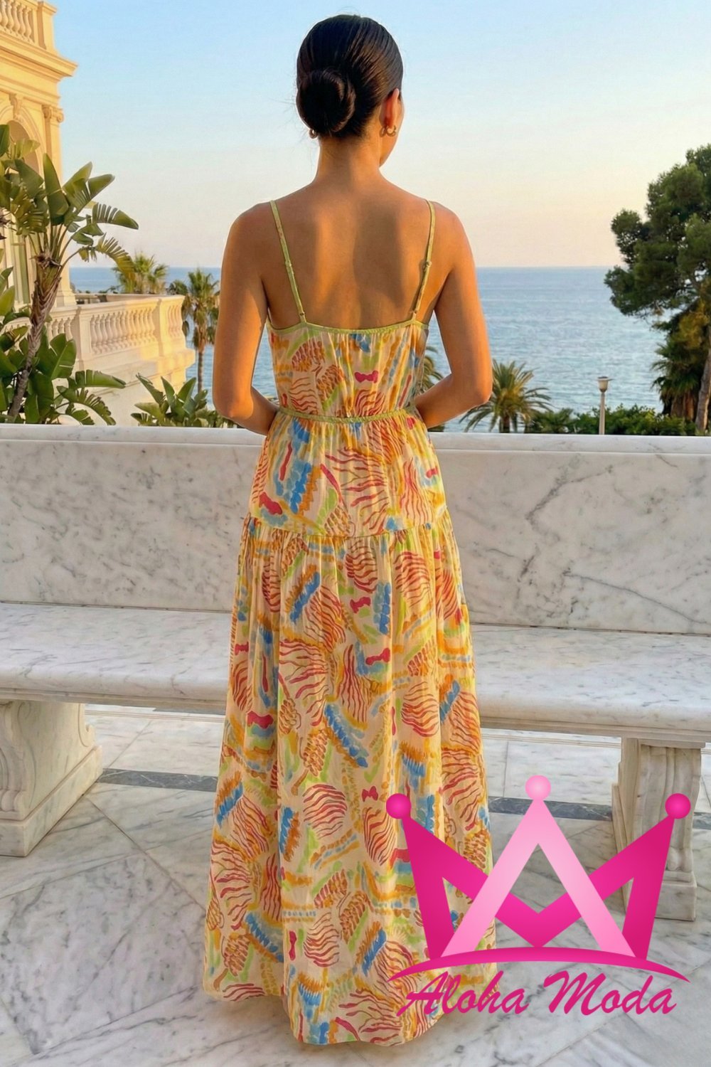 El Vestido Maxi Estampado Abstracto de Tirantes es la elección perfecta para quienes buscan destacar con un diseño moderno y artístico. Este vestido está adornado con un estampado que combina colores vibrantes y formas abstractas, generando un look original que es tanto versátil como sofisticado. Ideal para eventos casuales o reuniones especiales, esta prenda captura la esencia del estilo contemporáneo sin comprometer la comodidad.