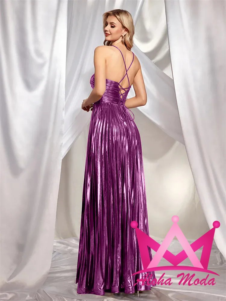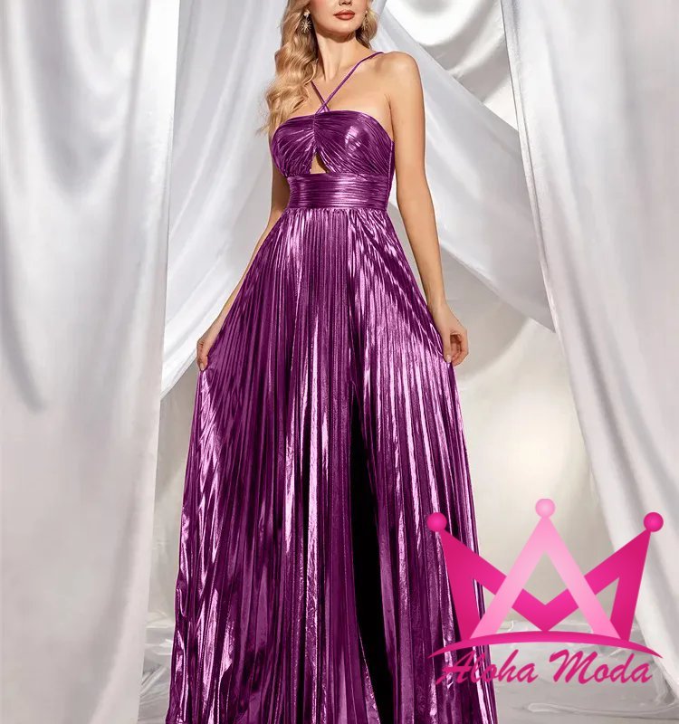 El vestido elegante maxi metalizado con falda plisada es la elección ideal para quienes buscan expresarse con estilo único. Accesorízalo con tacones altos y joyas minimalistas para lograr un look espectacular que no pasará desapercibido.