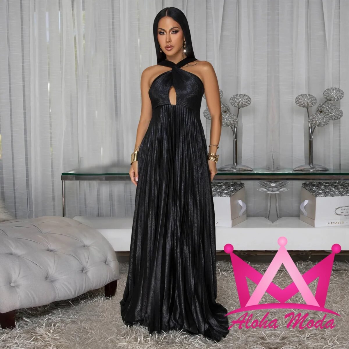 Destaca con nuestro impresionante vestido largo negro, diseñado para hacerte sentir segura y glamurosa. Este vestido no es solo una prenda; es una experiencia, una declaración de estilo y un testimonio de elegancia atemporal. Imagínate deslizándote por un evento nocturno, con la tela brillante reflejando la luz con cada movimiento, dejando una huella imborrable en todos tus encuentros. Con su combinación única de sofisticación y comodidad, este vestido es perfecto para cualquier ocasión especial.