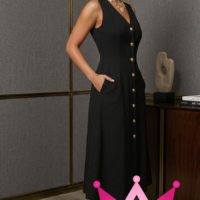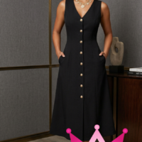 Este vestido midi elegante, con su diseño de botones y cuello en V, es una opción ideal para quienes buscan estilo sin esfuerzo. Perfecto para reuniones formales, eventos casuales e incluso para el día a día, este vestido combina una apariencia refinada con comodidad.