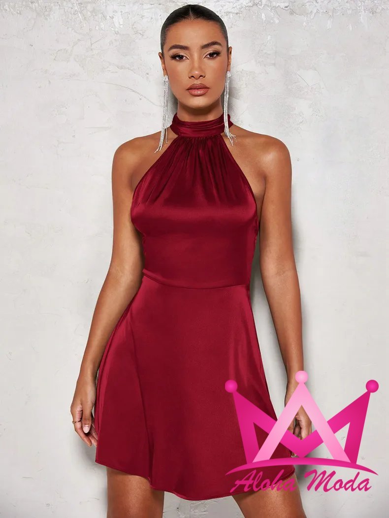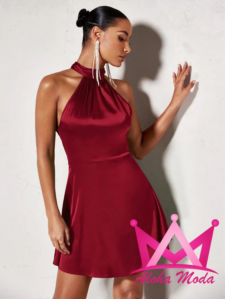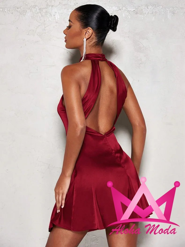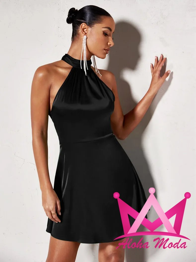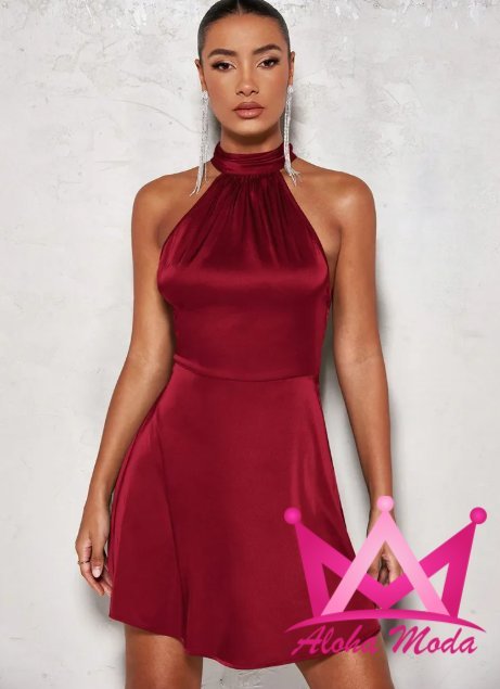 Sé el primero en valorar “Vestido Mini Satinado Cuello Halter”