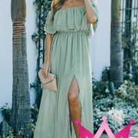 Haz una declaración en cada ocasión con nuestro vestido maxi verde abertura en pierna con hombros descubiertos. Este diseño impecable combina a la perfección elegancia, comodidad y un toque de sensualidad. Su estilo moderno es ideal para eventos especiales, cenas románticas o cualquier salida en la que quieras destacar.